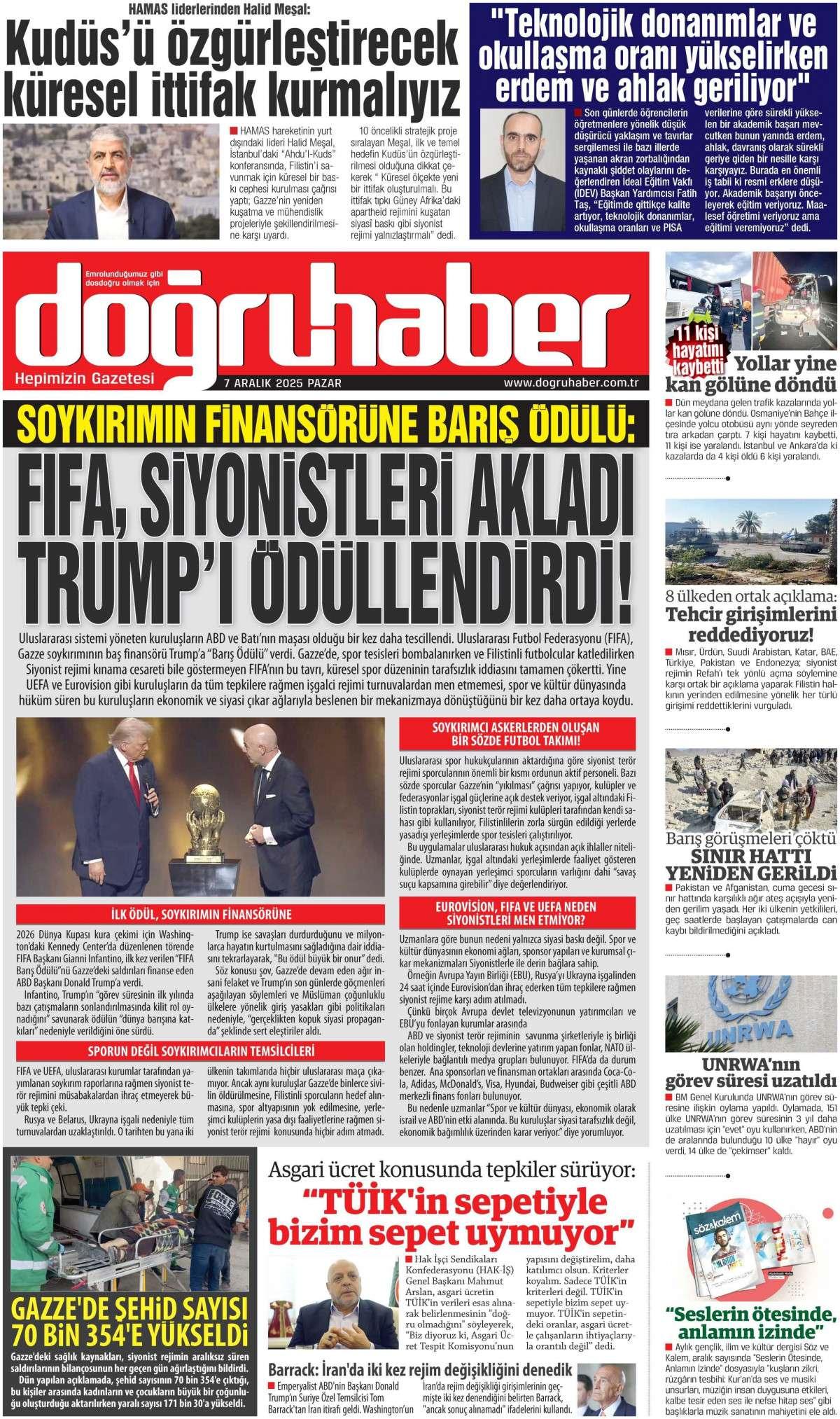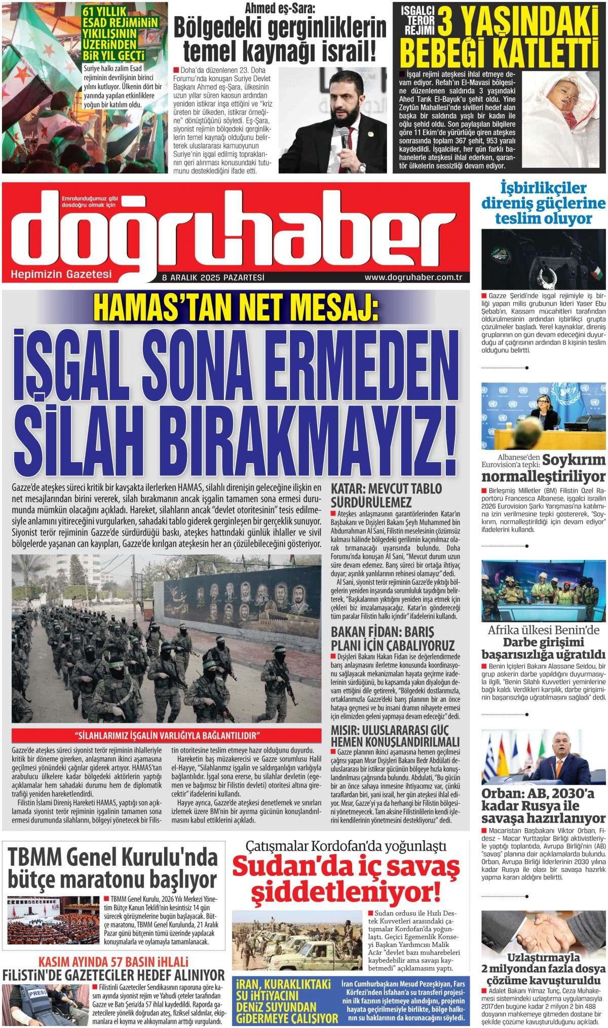 Doğru Haber Gazetesi 8 Aralık 2025 Günü Manşeti