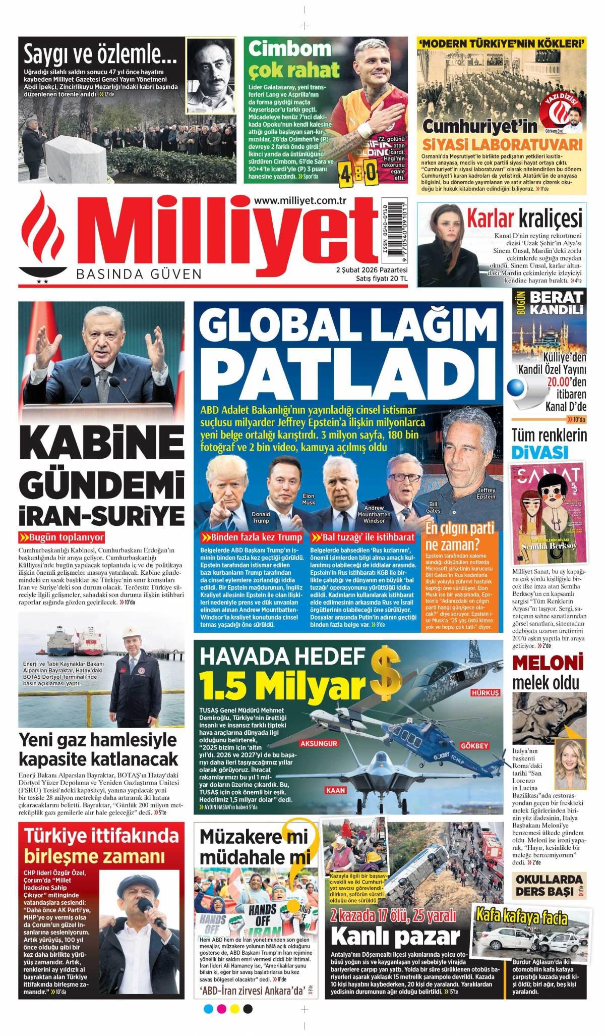 Milliyet Gazetesi 3 Şubat 2026 Günü Manşeti
