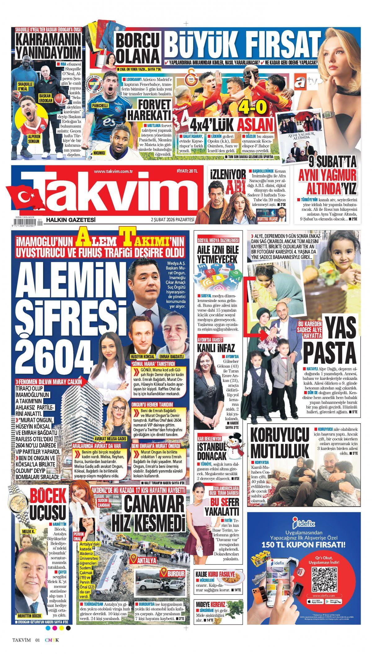 Takvim Gazetesi 3 Şubat 2026 Günü Manşeti